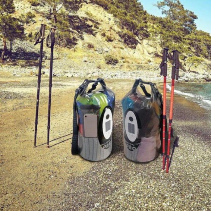 Enjoy your outdoor adventures with this waterproof bag, equipped with a built-in Bluetooth speaker for a great audio experience while hiking, camping, or spending time at the beach. Combining function and style, it's the perfect companion for travel and adventure enthusiasts. Its durable design is made of water-resistant PVC to protect your belongings from wetness and moisture, while its 10-liter interior capacity easily accommodates your daily essentials.